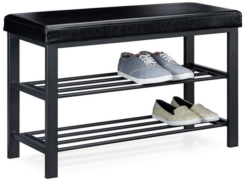 Die Relaxdays Schuhbank ist die ideale Lösung, um Ihre Schuhe ordentlich aufzubewahren und gleichzeitig einen bequemen Sitzplatz zu schaffen. Die Bank ist mit einer weichen Polsterung aus Kunstleder versehen, die für angenehmen Sitzkomfort sorgt. Mit den Maßen 49 x 81 x 31 cm bietet das Regal ausreichend Platz für 6-8 Paar Schuhe. Die offenen Ablageflächen aus Metall ermöglichen eine schnelle und übersichtliche Aufbewahrung. Das schlichte Design passt sich jedem Einrichtungsstil an und macht die Schuhbank vielseitig einsetzbar. Die Montage ist dank der beiliegenden Aufbauanleitung einfach und schnell erledigt. **Highlights** - Multifunktional: Schuhregal und Sitzbank in einem - Weiche Polsterung aus Kunstleder für angenehmen Sitzkomfort - Ausreichend Platz für 6-8 Paar Schuhe auf 2 Etagen - Offene Ablageflächen aus Metall für schnelle und übersichtliche Aufbewahrung - Schlichtes Design, passend für jeden Einrichtungsstil **Produkteigenschaften** - Maße: HxBxT 49 x 81 x 31 cm - Material: Kunstleder, Metall - Farbe: Schwarz **Lieferumfang** - 1x Relaxdays Schuhbank - 2x Seitenteile - 2x Ablageflächen - 8x Schrauben - Aufbauanleitung