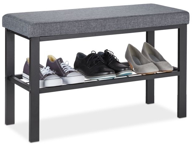Die Schuhbank in Schwarz-Grau (ID: 10038524) ist die ideale Lösung für Ihren Eingangsbereich. Sie bietet Platz für bis zu 3 Paar Schuhe auf einer praktischen Gitterablage und verfügt über ein bequemes, gepolstertes Sitzkissen. Das stabile Metallgestell und die schlichte Farbkombination aus Schwarz und Grau verleihen der Bank einen modernen Look, der auch im Schlafzimmer hervorragend zur Geltung kommt. **Highlights** - Praktische Schuhaufbewahrung - Bequemes Sitzkissen - Stabiles Metallgestell - Schlichte Farbkombination - Modernes Design **Produkteigenschaften** - Maße H x B x T: ca. 50,5 x 81 x 32 cm - Schuhfach Maße H x B x T: ca. 20 x 73 x 26 cm - Max. Traglast: 200 kg - Gewicht: ca. 6,2 kg - Material: Eisen, MDF, Polyester - Farbe: Schwarz, Grau **Lieferumfang** - 1x Flurbank in Einzelteilen - Anleitung und Montagematerial - Dekoartikel sind im Lieferumfang nicht enthalten