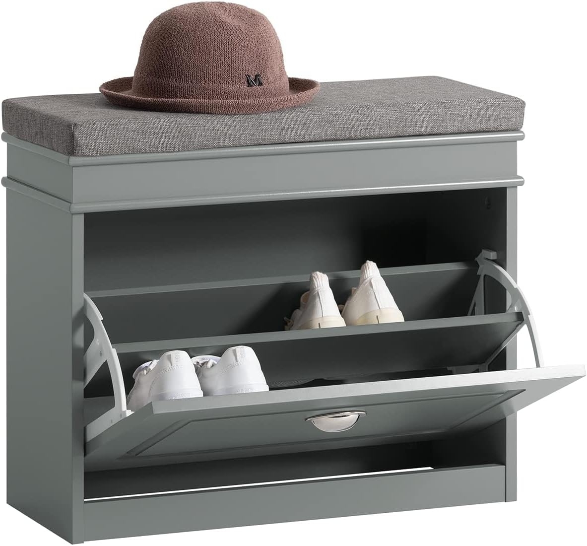 SoBuy FSR82-K-HG Schuhkipper Schuhschrank mit Klappe Schuhbank mit Sitzkissen Schuhkommode Sitzbank Hellgrau BHT ca. : 61 x 51 x 24 cm