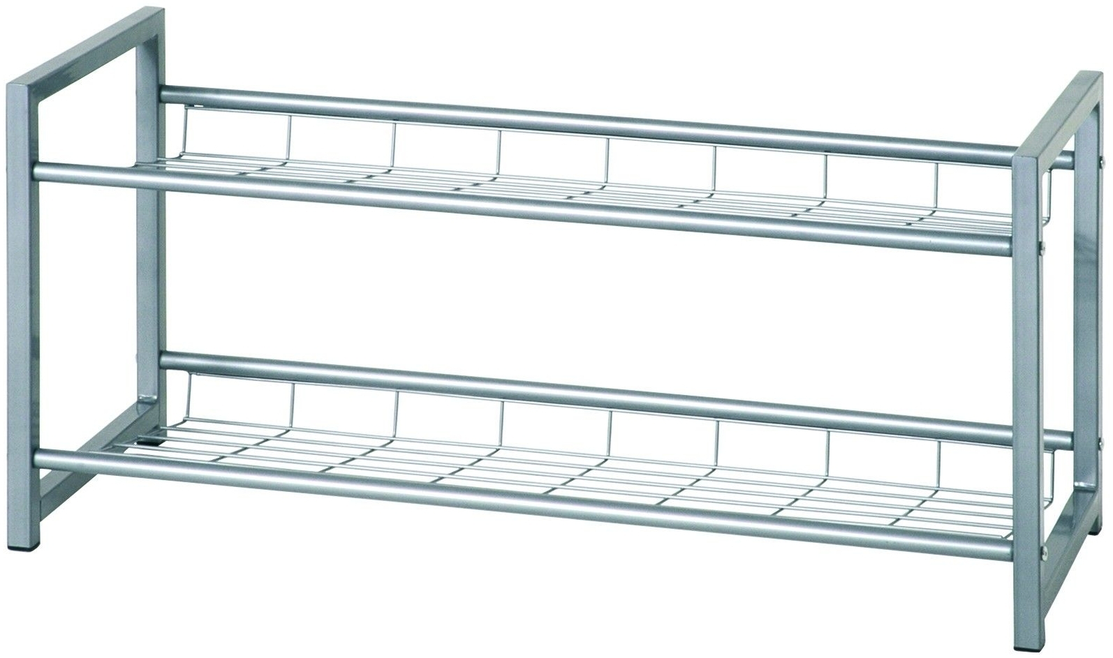 Praktisches Schuhregal ODESSA aus alufarbenem Stahlrohr mit zwei Ablagen für ca. 8 Paar Schuhe. Mit einer Breite von 80 cm, einer Höhe von 38 cm und einer Tiefe von 30 cm ist es ideal für den Einsatz im Kleiderschrank oder im Flur. Dank seines geringen Gewichts von nur 3 kg lässt sich das Regal mühelos umstellen und sorgt für Ordnung in Ihrem Zuhause. **Highlights** - Aus alufarbenem Stahlrohr - Zwei Ablagen für ca. 8 Paar Schuhe - Geringe Stellfläche für einfache Integration - Ideal als Einsatz für den Kleiderschrank - Leichtes Gewicht von nur 3 kg **Produkteigenschaften** - Maße (HxBxT): 38 x 80 x 30 cm - Praktisches Design für Ordnung im Flur oder Kleiderschrank - Bietet Platz für durchschnittliche Schuhgrößen