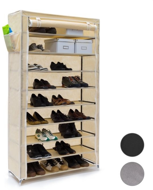 Der Relaxdays Schuhschrank VALENTIN bietet mit seinen 9 Ebenen Platz für bis zu 45 Paar Schuhe und eignet sich ideal zur Aufbewahrung von Taschen und Decken. Der Stoffbezug mit Reißverschlüssen sorgt für eine staubfreie Lagerung. Mit kompakten Maßen von 161 x 88 x 30 cm passt er auch in kleine Ecken und lässt sich einfach montieren. **Highlights** - Platz für bis zu 45 Paar Schuhe - Vielseitig einsetzbar für Schuhe, Taschen und mehr - Stoffbezug mit Reißverschlüssen für staubfreie Aufbewahrung - Platzsparendes Design für kleine Ecken - Einfache und schnelle Montage **Produkteigenschaften** - Abmessungen: 161 x 88 x 30 cm (H x B x T) - Material: Gestell aus Stahlrohr und Vlies-Gewebe - Anzahl der Ebenen: 9 (10 ohne Überzug) - Gewicht: ca. 3 kg **Lieferumfang** - 1x Relaxdays Schuhschrank VALENTIN beige - Nummerierte Stangen für Metallgestell - 10x Einleger aus Vlies - Vlies-Wand und -Tür - Verbindungsstücke aus Kunststoff - Aufbauhilfe - Dekorationsartikel sind im Lieferumfang nicht enthalten