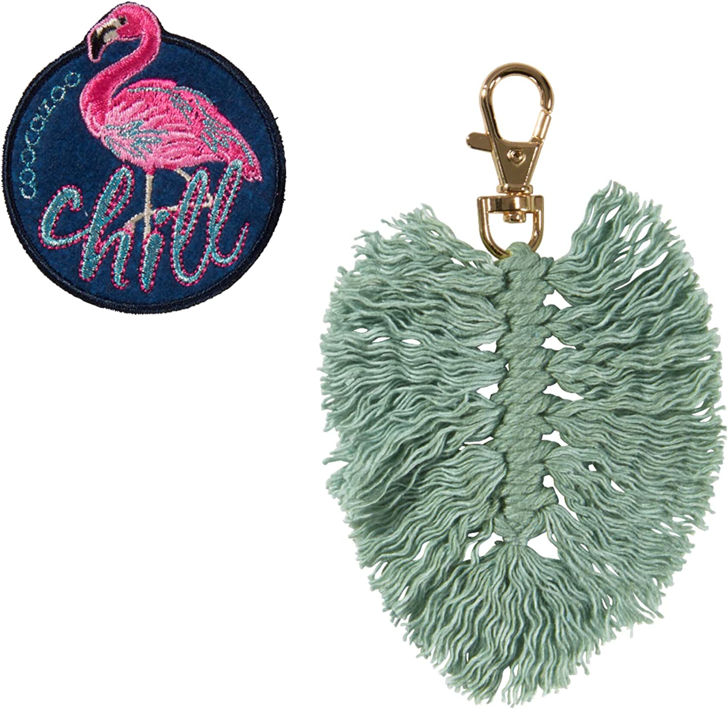coocazoo COLOUR UP-Set, Flamingo Das Colour up-Set, das den Sommer zu Ihnen nach Hause bringt. Das coole Flamingo-Motiv in Kombination mit dem schicken Anhänger aus Makramee verbreitet auch im tiefsten Winter Sommer-Vibes. Der Flamingo und sein flauschiger Anhänger lassen sich außerdem problemlos mit den Schulrucksack-Designs von coocazoo und anderen Colour-up-Sets kombinieren. Das Set enthält ein Klett-Patch, das ganz einfach an der Klettfläche an der Front des Rucksacks angeheftet werden kann, sowie einen Anhänger. Eine extra dafür vorgesehene Schlaufe macht das Anbringen des Anhängers ebenfalls kinderleicht. Natürlich kann der Anhänger auch mit anderen Varianten kombiniert und, genauso wie das Patch, beliebig ausgetauscht werden. Details: 1 Klett-Patch und 1 Anhänger enthalten Individuell austauschbar Material Patch: Stickmotiv mit Klett-Rückseite Material Anhänger: Makramee Hochwertige coocazoo Qualität Passt zu allen Schulrucksäcken der Reihen Mate, Porter und Joker