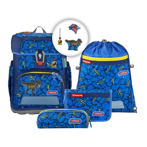 Step by Step Schulranzen-Set Cloud SchleichDinosaurs®, Tarbosaurs, 5-teilig, blau, Drache, ergonomischer Tornister mit Reflektoren, höhenverstellbar mit Hüftgurt, 19l