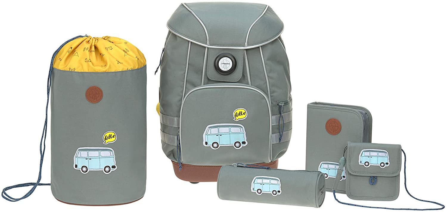 in Schulranzen-SetsLässig Schulrucksack-Set 5tlg. 4Kids - Motiv: Adenture Bus40 cm, 23 Liter, 1,2 kg - Farbe: grau,gelb, mit reflektierenden Elementen
