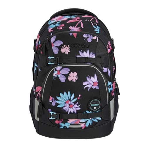 Coocazoo Schulrucksack Mate „Floral Artnight”schwarz-blau, ergonomischer & anpassbarer Tornister, höhen- & größenverstellbar, mit Brustgurt & Hüftgurt, ab der 3. Klasse