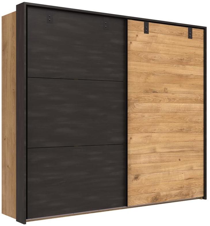 | Name | Schwebetürenschrank DETROIT Kleiderschrank in Plankeneiche und Metall |