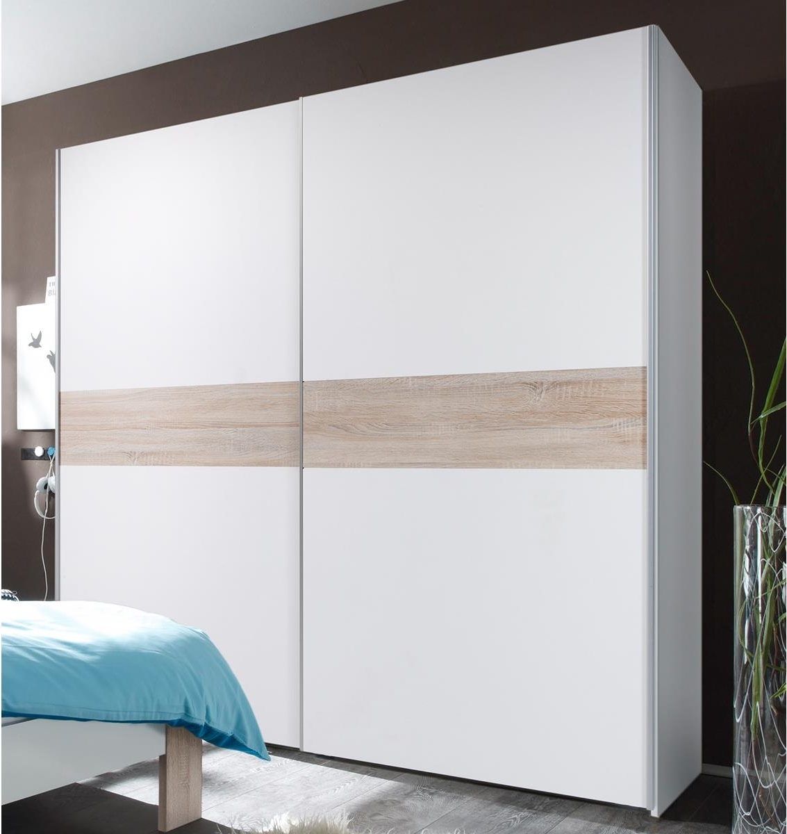| Name | Schwebetürenschrank >Noni< in Weiß / Absetzung Sonoma-Eiche - 170x195x60 (BxHxT) |