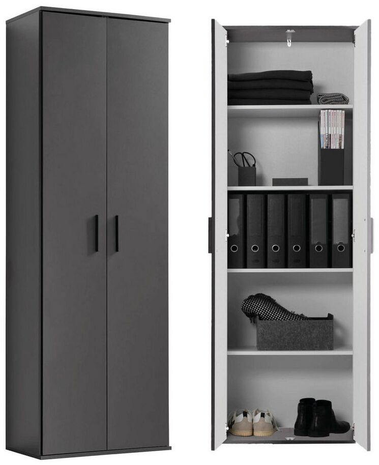 in Schwebetürenschränkemokebo® Mehrzweckschrank 60CM Breite mit Einlegeböden 'Der Lange' moderner Aktenschrank in Grau BZW. Schwarz Matt aus HolzSchrank & Haushaltsschrank | 60 x 180 x 34 (B/H/T in cm) | Anthrazit
