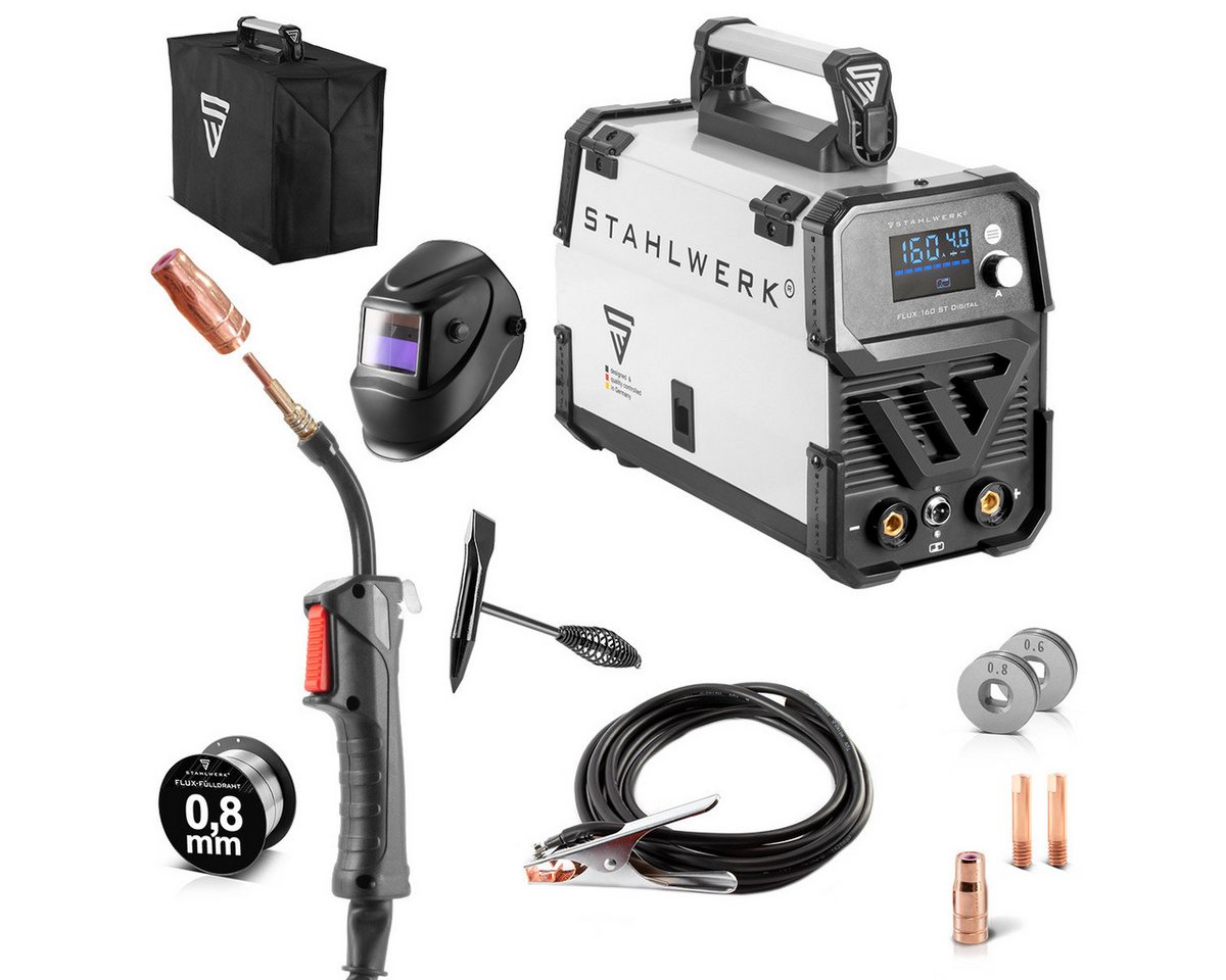 - Das STAHLWERK Fülldrahtschweißgerät Schweißgerät FLUX 160 ST Digital bietet eine Leistung von 40 bis 160 A und ist mit einem synergistischen Drahtvorschub ausgestattet