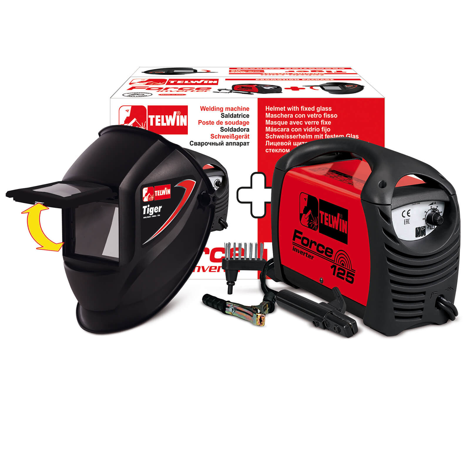 in SchweißgeräteTelwin S.p.A. 815861 Force 125 Inverterschweissgerät für Das Elektrodenschweissen Mit Schweisshelm 230 V, Rot