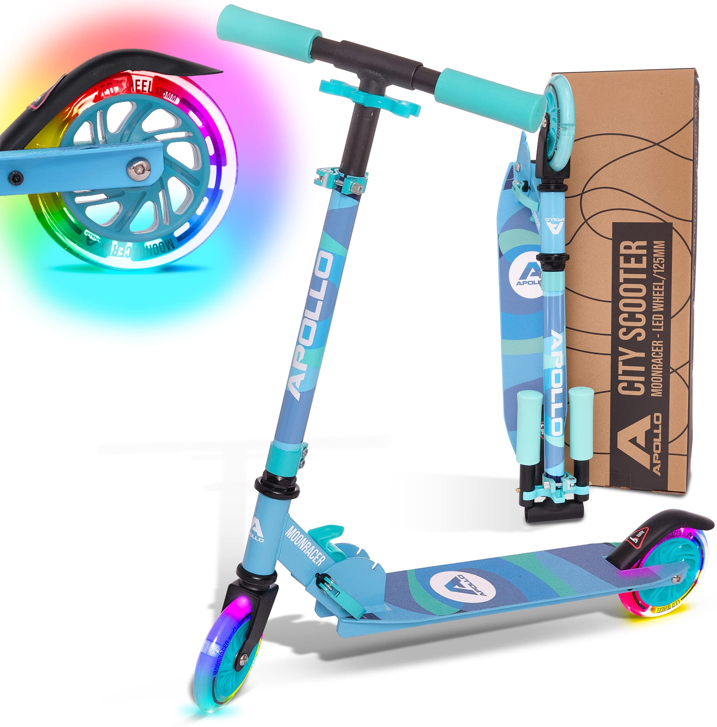 | Name | Apollo Scooter LED - Moonracer | City Scooter Kinder mit Federung | City Roller für Kinder klappbar | Tretroller Kinder ab 4 Jahre | sportlicher Cityroller | verstellbar, perfekt als Kinder Roller |