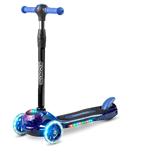 RICOKIDS DreiradrollerRobuster Roller für Kinder mit 3 stabilen Rollen, Farbige LED-Beleuchtung, Einstellbare Lenkerhöhe und rutschfester Plattform, bis 35 kg, Blau und Schwarz