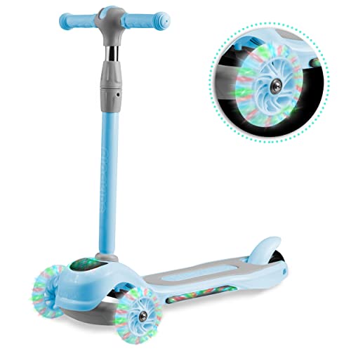 - Der Ricokids LED Scooter in hellblau ist ein idealer Tretroller für Kinder, ausgestattet mit drei stabilen Rädern, die mit bunten LED-Leuchten versehen sind