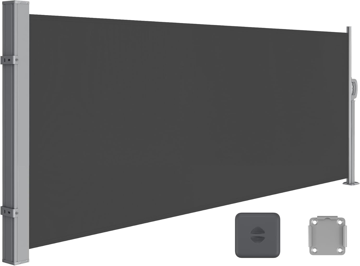 Die Songmics Seitenmarkise bietet Ihnen einen effektiven Sicht- und Sonnenschutz mit einem robusten Stahl-Kasten. Mit einer Größe von 140 x 300 cm (H x L) und einem Gewicht von 6,4 kg ist sie ideal für sonnige oder leicht windige Tage. Die Markise besteht aus pulverbeschichtetem Stahl und Polyester (220 g/m²) mit einer Polyurethan-Beschichtung, die für Langlebigkeit sorgt. **Highlights** - Rostbeständig: Langlebige Materialien für eine hohe Widerstandsfähigkeit. - Ausziehbar: Flexibler Sicht- und Sonnenschutz nach Bedarf. - Stahl-Kasten: Robuste Konstruktion für zusätzliche Stabilität. - Leichtes Gewicht: Einfach zu handhaben und zu montieren. - Pflegeleicht: Reinigung mit einem feuchten Tuch möglich. **Produkteigenschaften** - Farbe: Anthrazit - Material: Pulverbeschichteter Stahl, Polyester (220 g/m²), Polyurethan-Beschichtung - Maße: 140 x 300 cm (H x L) - Gewicht: 6,4 kg **Lieferumfang** - 1 x Seitenmarkise - 1 x Bodenhalterung - 1 x Schutzkappe - 1 x Zubehörpaket - 1 x Anleitung