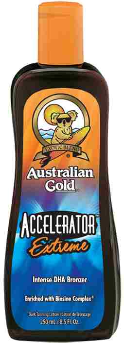 - Die Australian Gold Accelerator Extreme Lotion ist ein intensiver Bräunungsbeschleuniger, der die Haut mit Feuchtigkeit versorgt.