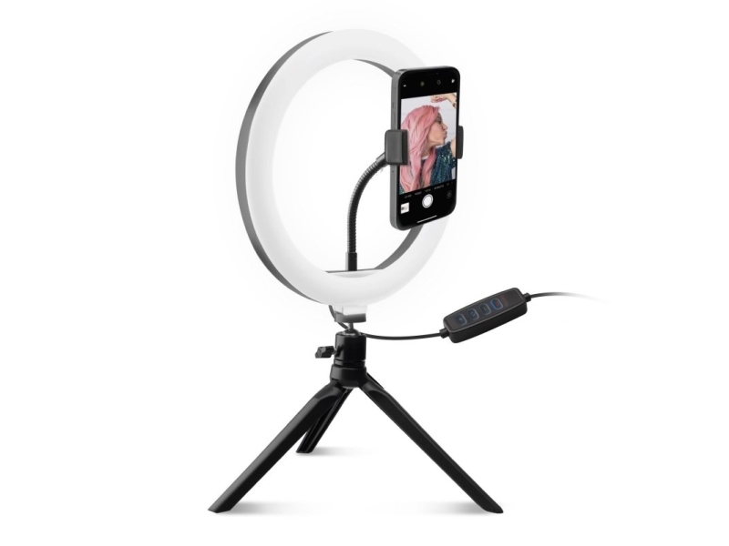 SBS Selfie-Stativ mit Ring-Leuchte (20 cm), schwarz