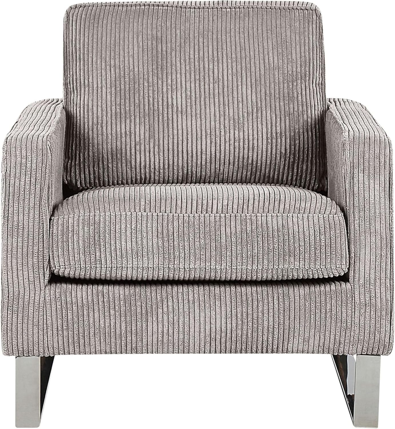 Der Sessel Cord grau VIND vereint stilvolles Design mit hohem Komfort. Die edle Ausstrahlung des hochwertigen Cordmaterials in Hellgrau und die komfortablen Armlehnen sorgen für ein angenehmes Sitzgefühl. Die stabilen Metallkufen garantieren einen festen Stand und die Wellenfederung bietet zusätzlichen Komfort. **Highlights** - Ausgezeichneter Komfort für entspannte Stunden - Passt ausgezeichnet zu vielen Einrichtungsstilen - Traditionelles Design mit moderner Note - Hochwertiges Polster für optimalen Sitzkomfort - Abnehmbare Bezüge für einfache Pflege **Produkteigenschaften** - Typ: Sessel - Stil: Retro - Farbe: Grau - Farbton: Hellgrau - Material: Cord - Zusätzliches Material: Edelstahl - Füllmaterial: Schaumstoff - Gestellmaterial: Stahl - Sitzmaterial: Stoff - Zusammenstellung: 75% Polyester - Armlehnen: Gerade - Sitzkonstruktion: Wellenfederung - Schaumstoffdichte: 24 kg/m3 - Abmessungen: - Höhe Armlehnen: 62 cm - Tiefe: 82 cm - Dicke der Polsterauflagen: 11 cm - Sitzhöhe: 44 cm - Breite: 76 cm - Höhe: 82 cm - Sitzfläche: 60x48 cm - Gewicht: 23 kg - Max. Belastung: 200 kg **Lieferumfang** - 1 x Sessel