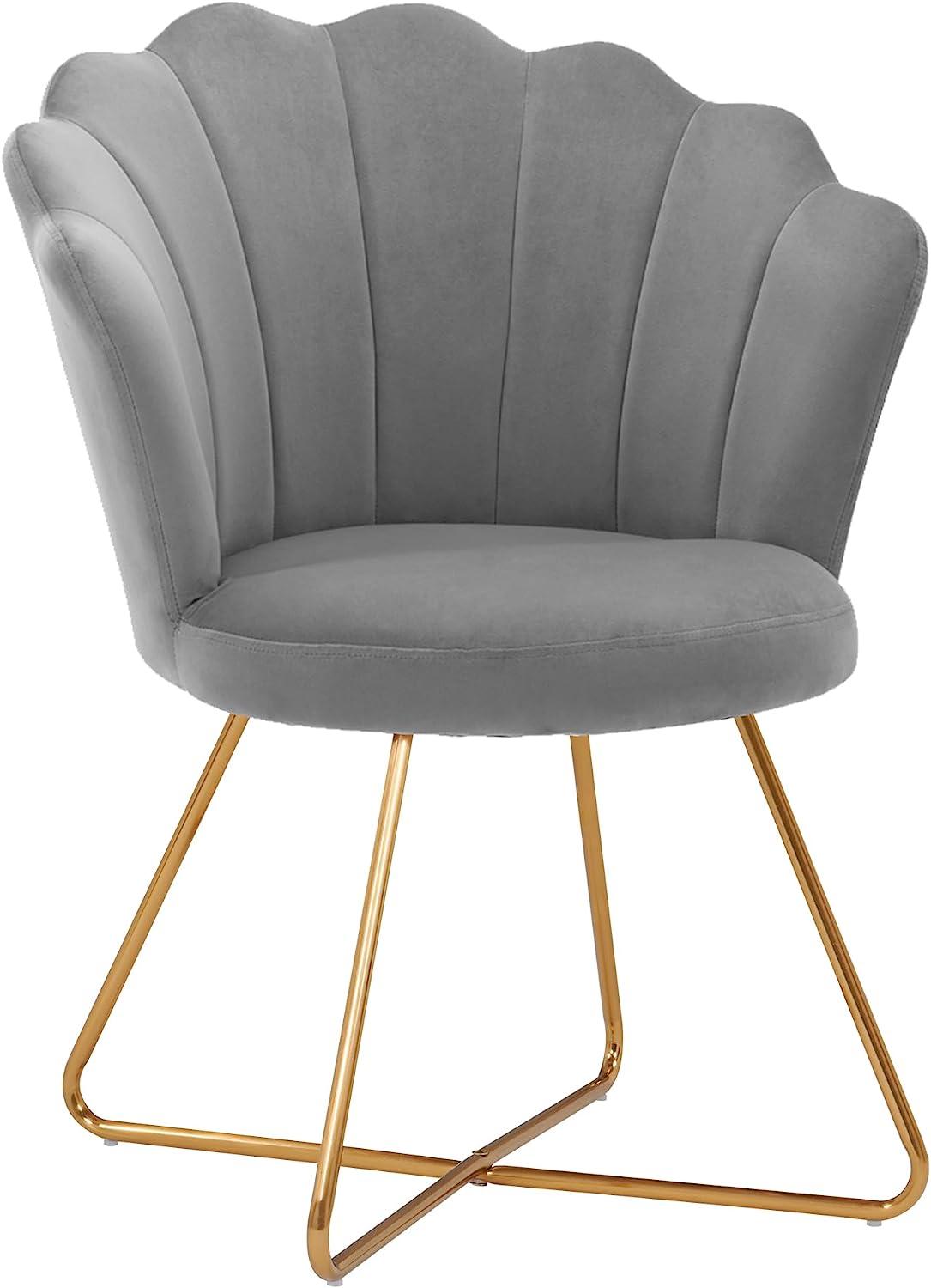 Duhome Sessel aus Stoff Samt Polstersessel Retro Design Polsterstuhl Metallgestell Gold 8057CFarbe:Grau, Material:Samt