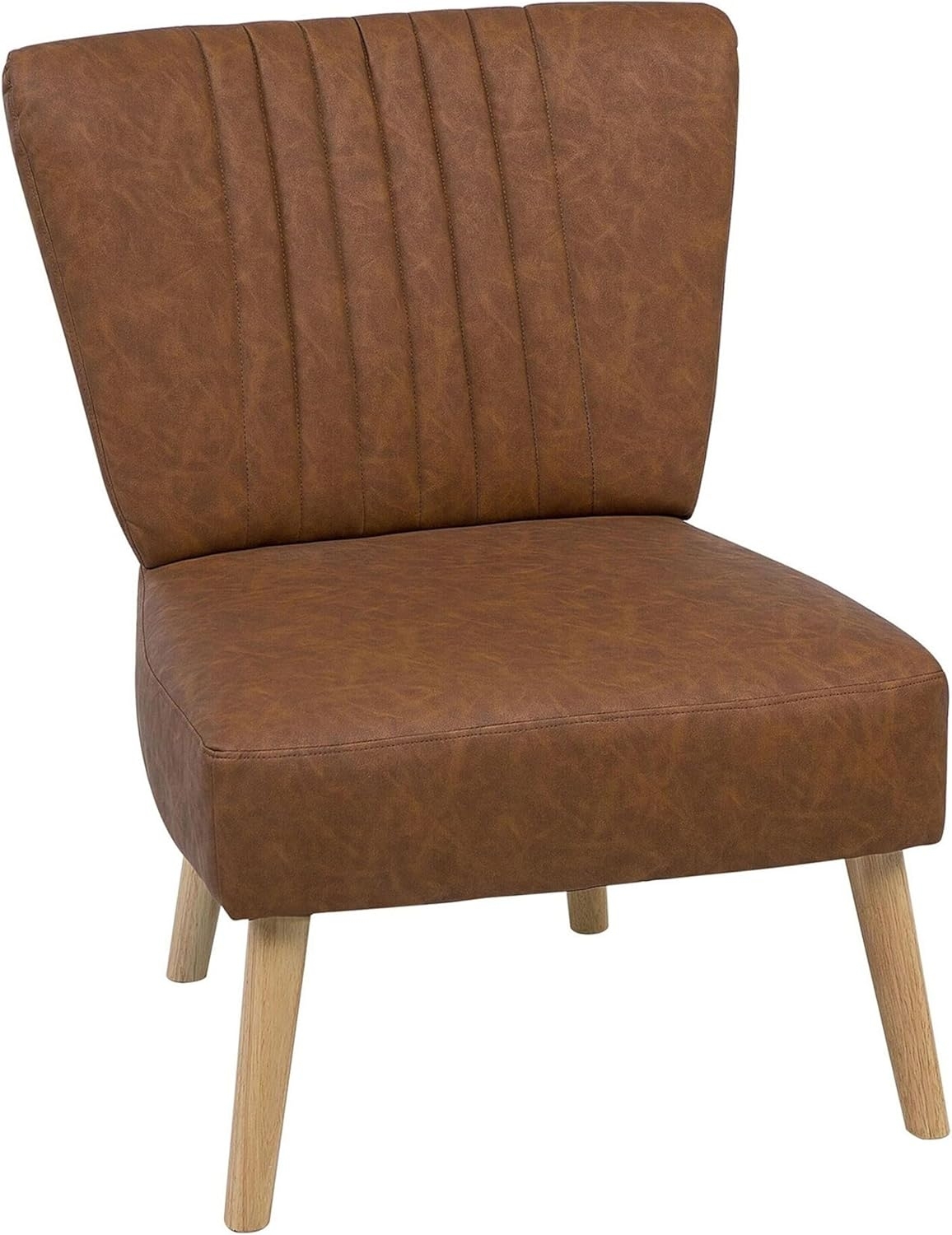 Charmant und gemütlich: Der braune VAASA Retro-Sessel aus Kunstleder besticht durch hochwertige Qualität und optimalen Sitzkomfort. Die geräumige Sitzfläche und die komfortable Rückenlehne mit dekorativen Ziernähten laden zum Entspannen ein. Strapazierfähiges Kunstleder, Gummibaumholzbeine und eine stabile Konstruktion runden das Design ab. **Highlights** - Dicke Polsterung für maximalen Komfort - Stabile Konstruktion für langanhaltende Nutzung - Klassisches Design mit vertikaler Steppung - Rundumbezug ermöglicht freie Platzierung im Raum - Schutzkappen zum Bodenschutz **Produkteigenschaften** - Typ: Sessel - Stil: Retro - Farbe: Braun - Farbton: Goldbraun - Material: Kunstleder - Zusätzliches Material: Gummibaumholz - Füllmaterial: Schaumstoff - Gestellmaterial: Massivholz - Sitzmaterial: Kunstleder - Zusammenstellung: 100% Kunstleder - Armlehnen: Nein - Schutzkappen / Filzgleiter: Ja - Muster: Kein Muster - Neigbar: Nein - Sitzkonstruktion: Elastische Gurtbänder - Schaumstoffdichte: 24 kg/m3 **Abmessungen** - Tiefe: 60 cm - Dicke der Polsterauflagen: 15 cm - Sitzhöhe: 40 cm - Breite: 61 cm - Höhe: 85 cm - Sitzfläche: 60x50 cm - Gewicht: 13 kg - Max. Belastung: 150 kg **Lieferumfang** - 1 x Sessel **Montage** Teilweise montiert. 5 - 15 Min. Aufbauzeit. **Pflegeanleitung** *Kunstleder:* 1. Milde Reinigungsmittel verwenden 2. Flecken mit destilliertem Wasser oder milder Seifenlauge reinigen 3. Oberflächen vorsichtig absaugen 4. Wöchentlich mit feuchtem Tuch abwischen, nicht nachfetten *Gummibaumholz:* 1. Milde Reinigungsmittel und weiche Tücher verwenden 2. Bei geölten Holzartikeln regelmäßig nachölen 3. Feuchte Stellen sofort trocken reiben, Dauernässe vermeiden.