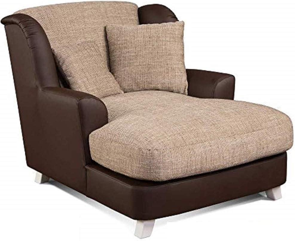 | Name | Cavadore XXL-Sessel Assado / Zweifarbiger Polstersessel mit Holzfüßen und großer Sitzfläche / Inkl. 2 Zierkissen / 109 x 104 x 145 / Materialmix Strukturstoff Hellbraun und Kunstleder Dunkelbraun |