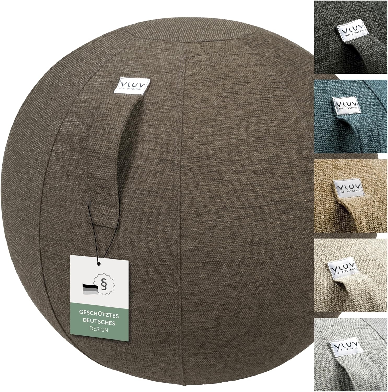 | Name | VLUV STOV Stoff-Sitzball, ergonomisches Sitzmöbel für Büro und Zuhause, Farbe: Greige (grau), Ø 60cm - 65cm, hochwertiger Möbelbezugsstoff, robust und formstabil, mit Tragegriff |