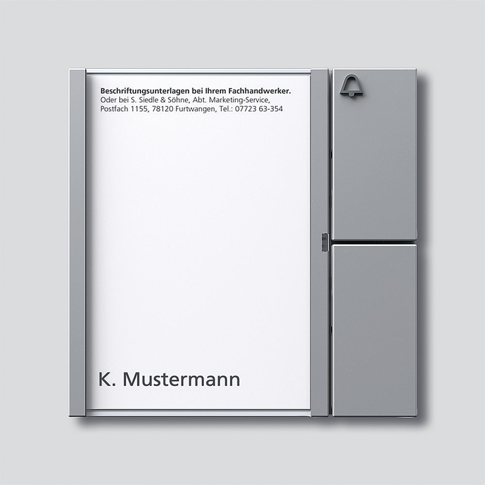 - Das Siedle und Söhne TM 612-1 SM Tasten-Modul verfügt über eine separate Ruftaste mit Glockensymbol.