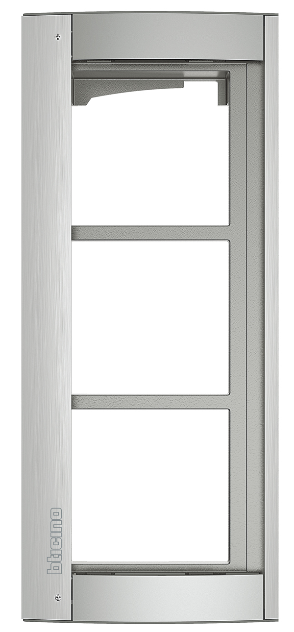 - Der Abdeckrahmen ist für die 3-modulige SFREA Sprechanlage Allmetal konzipiert und enthält einen Modulträger für Audio-Video Türstationen.