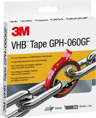 3M VHB GPH-060GF Doppelseitiges Hochleistungs-Klebeband für dauerhafte VerbindungHitzebeständig, UV-Beständig, 19 mm x 3 m, 0.6 mm, Grau