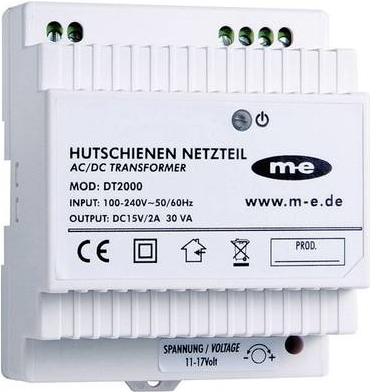- Das m-e dt-2000 ist ein Hutschienen-Netzteil, das speziell für kabelgebundene Türsprechanlagen von m-e entwickelt wurde.
