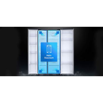 - Der Samsung RS6KA8101S9/EG Side-by-Side-Kühlschrank verfügt über die Space Max-Technologie, die eine optimale Raumausnutzung ermöglicht.