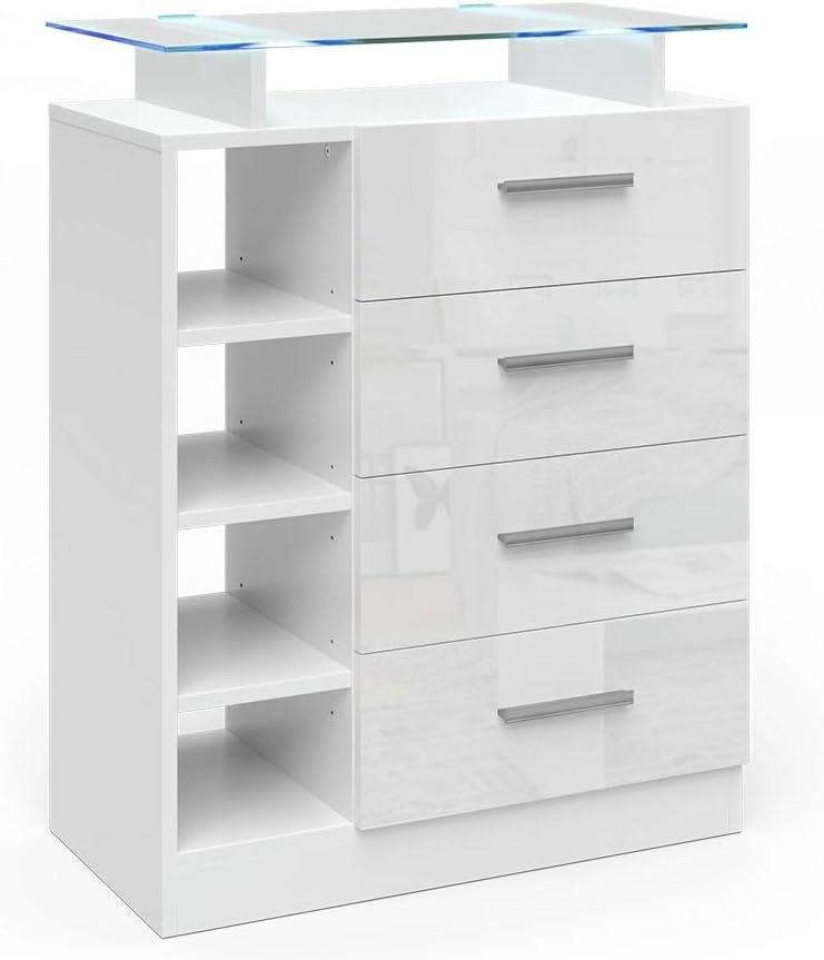 | Lieferumfang | 1x Kommode (ohne Deko), 2x LED-Clip, 1x Montageanleitung, Montagematerial |