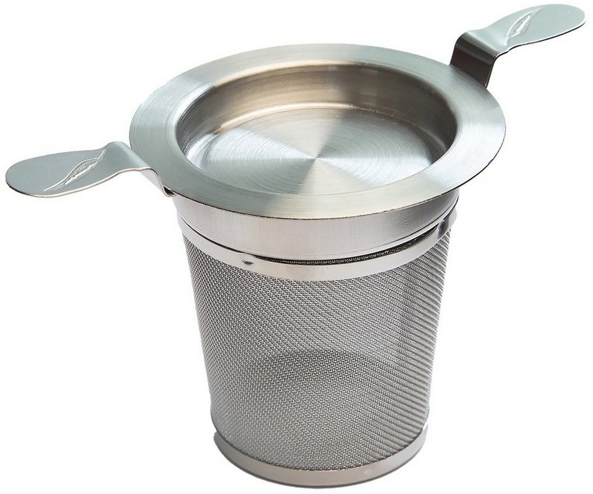 Edelstahlfilter mit Doppelhenkel und Abtropftablett für Teekannen und Becher Hygienisches und geschmacksneutrales Edelstahlfiltergewebe, extra feines Gewebe Größe: Durchmesser Sieb innen 6 cm / außen 7,5 cm - Durchmesser mit Doppelhenkel 135 mm - geeignet für fast alle Teekannen und Becher