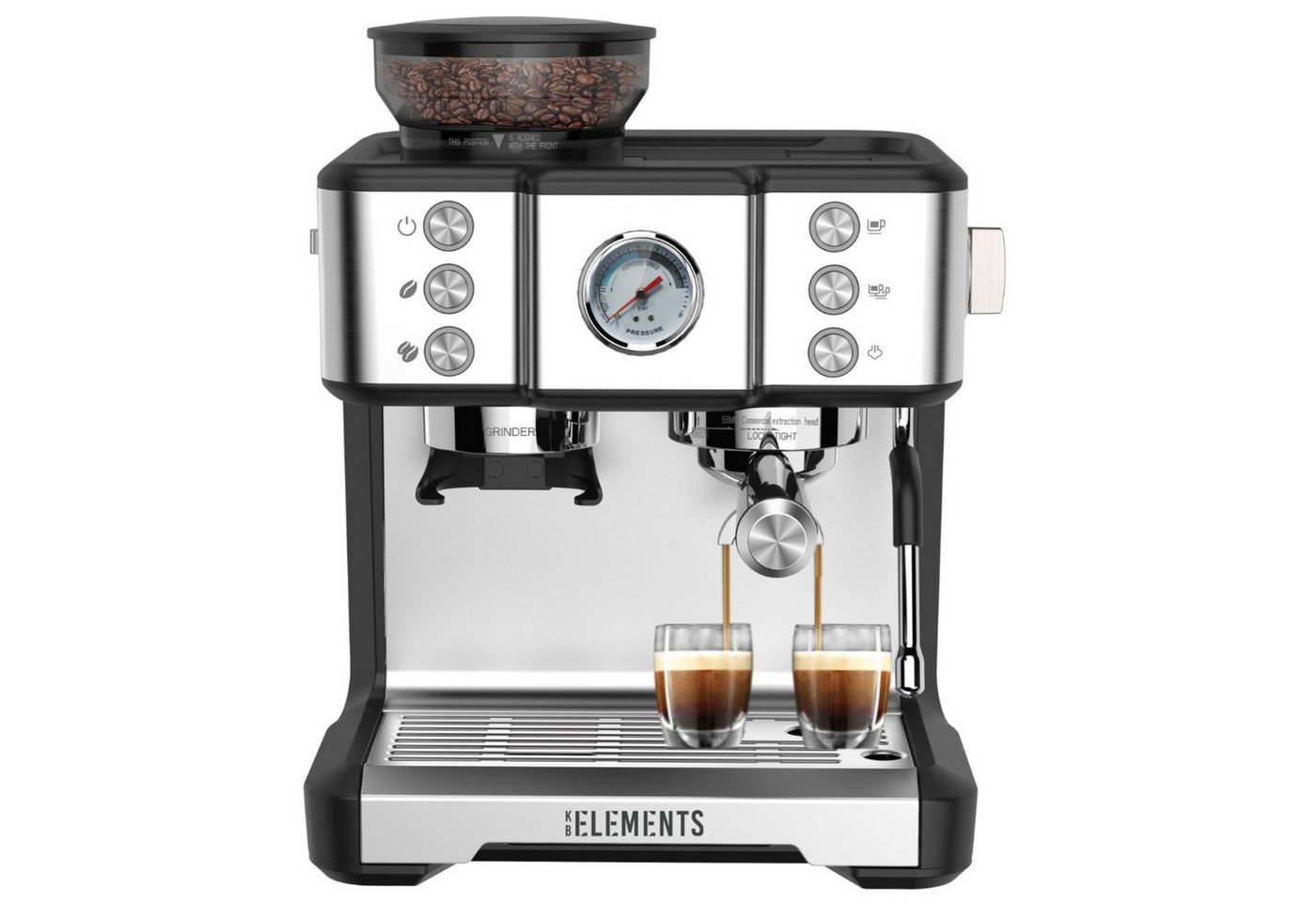 KB Elements Espressomaschine Siebträgermaschine mit Mahlwerk20 bar, Dual-Boiler-Heizsystem, Silber