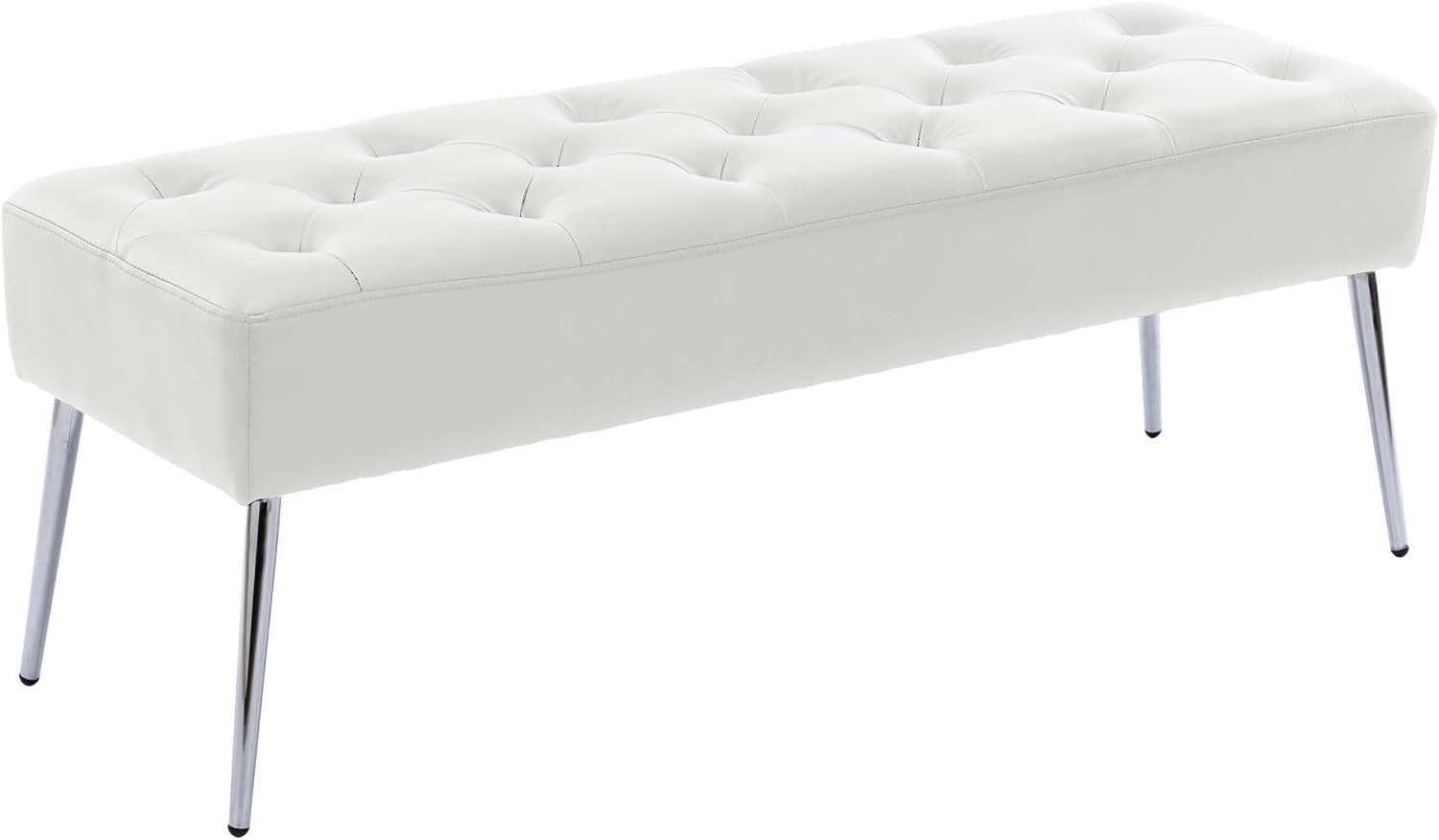 in SitzbänkeDuhome Sitzbank mit KnöpfenGepolstert Polsterbank Schuhbank mit Fußstütze Bettbank Sitzhocker für Eingangsbereich Wohnzimmer Schlafzimmer, Weiß