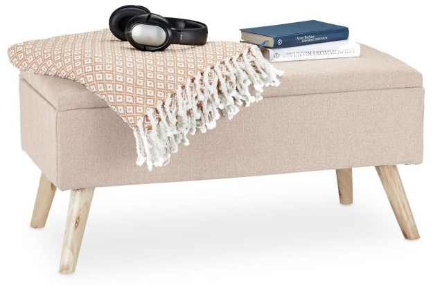 - Die Sitzbank hat einen Bezug in Leinen-Optik, der zusammen mit den Holzbeinen eine ansprechende Optik bietet.