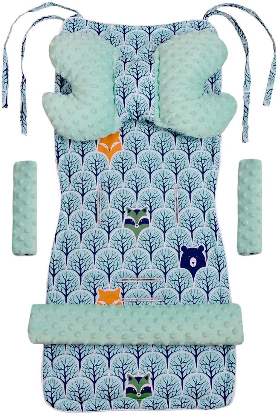 | Name | Universal Sitzauflage Kinderwagen & Buggys Sitzeinglage Kinderwagendecke5tgl. Gurtpolster + Spielbogen Kinderwagenset MINKY Baumwolle Medi Partners (Wald mil minzer Minky) |