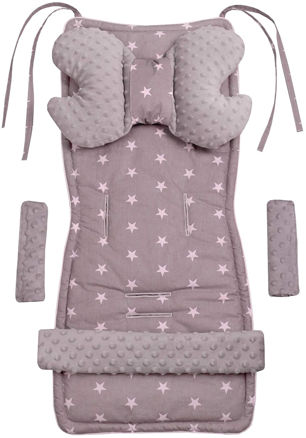 | Name | Universal Sitzauflage Kinderwagen & Buggys Sitzeinglage Kinderwagendecke 5tgl Gurtpolster + Spielbogen Kinderwagenset MINKY Baumwolle Medi Partners (Sternen mit grauen Minky) |