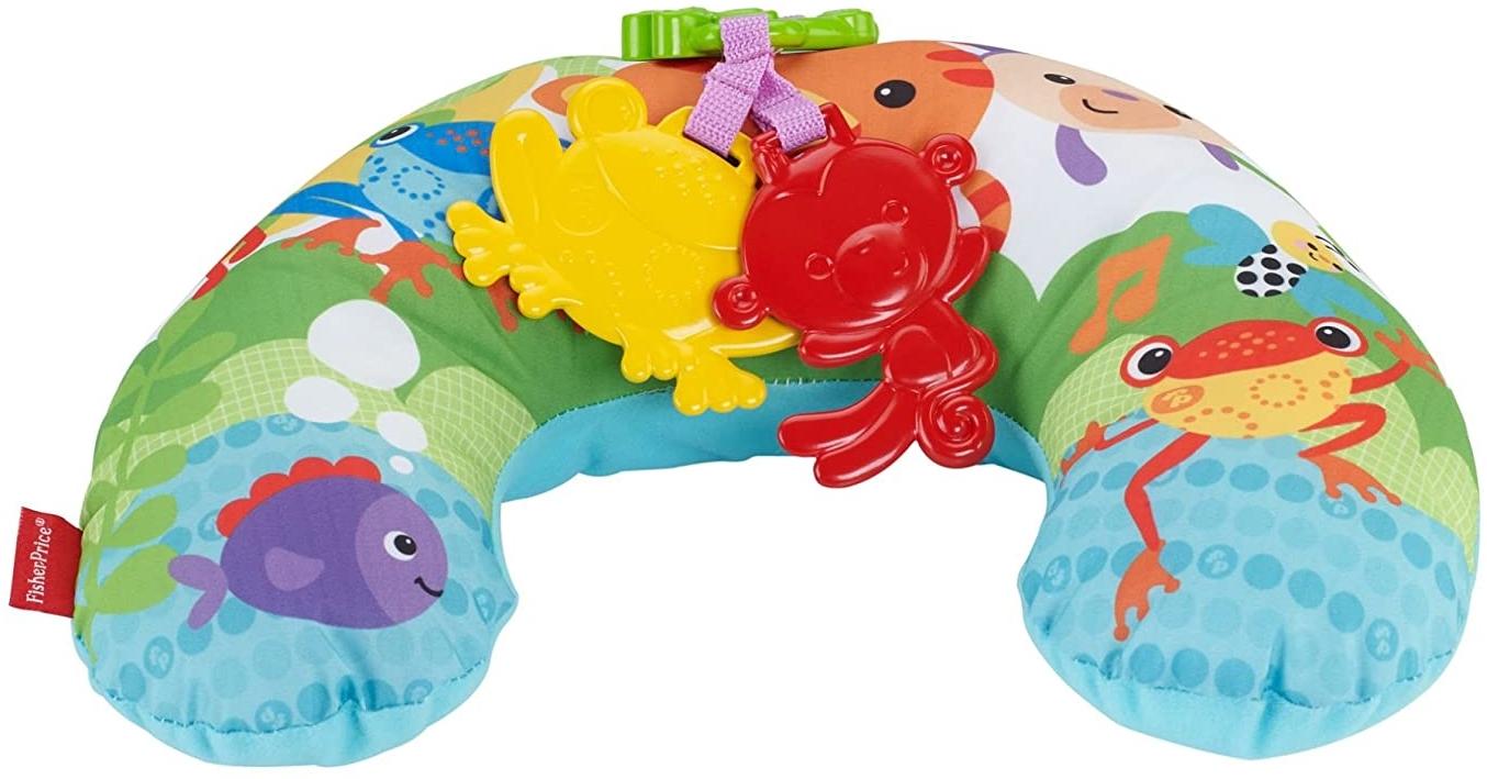 Das Fisher-Price CDR52 Rainforest Spielkissen ist ein bequemes, wie eine Mondsichel geformtes Kissen, das für jede Entwicklungsstufe Ihres Kindes geeignet ist. Es bietet Halt beim Spielen in der Bauchlage und im Sitzen und sorgt für Unterhaltung und Beruhigung, sowohl zu Hause als auch unterwegs. Mit extra Schlaufen zum Anbringen eigener Spielzeuge und einer maschinenwaschbaren Funktion (nach Herausnehmen der elektronischen Einheit) ist es ein praktisches Motorikspielzeug für Babys ab der Geburt. **Highlights** - Bequemes, wie eine Mondsichel geformtes Kissen - Bietet Halt beim Spielen in der Bauchlage und im Sitzen - Beruhigt und unterhält das Baby zu Hause und unterwegs - Extra Schlaufen zum Anbringen eigener Spielzeuge - Maschinenwaschbar (bei zuvor herausgenommener elektronischer Einheit) **Produkteigenschaften** - Alter: ab der Geburt - Motorikspielzeug