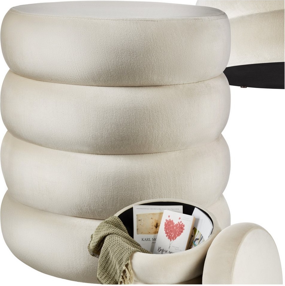 in Sitzhockertectake® Hocker mit StauraumScandi Sitzhocker Samt Stoff, Pouf, Polsterhocker rund für Schminktisch, Schlafzimmer, Wohnzimmer Möbel, als Flur Möbel, Stauhocker Wohnen - Samtoptik Creme-weiß