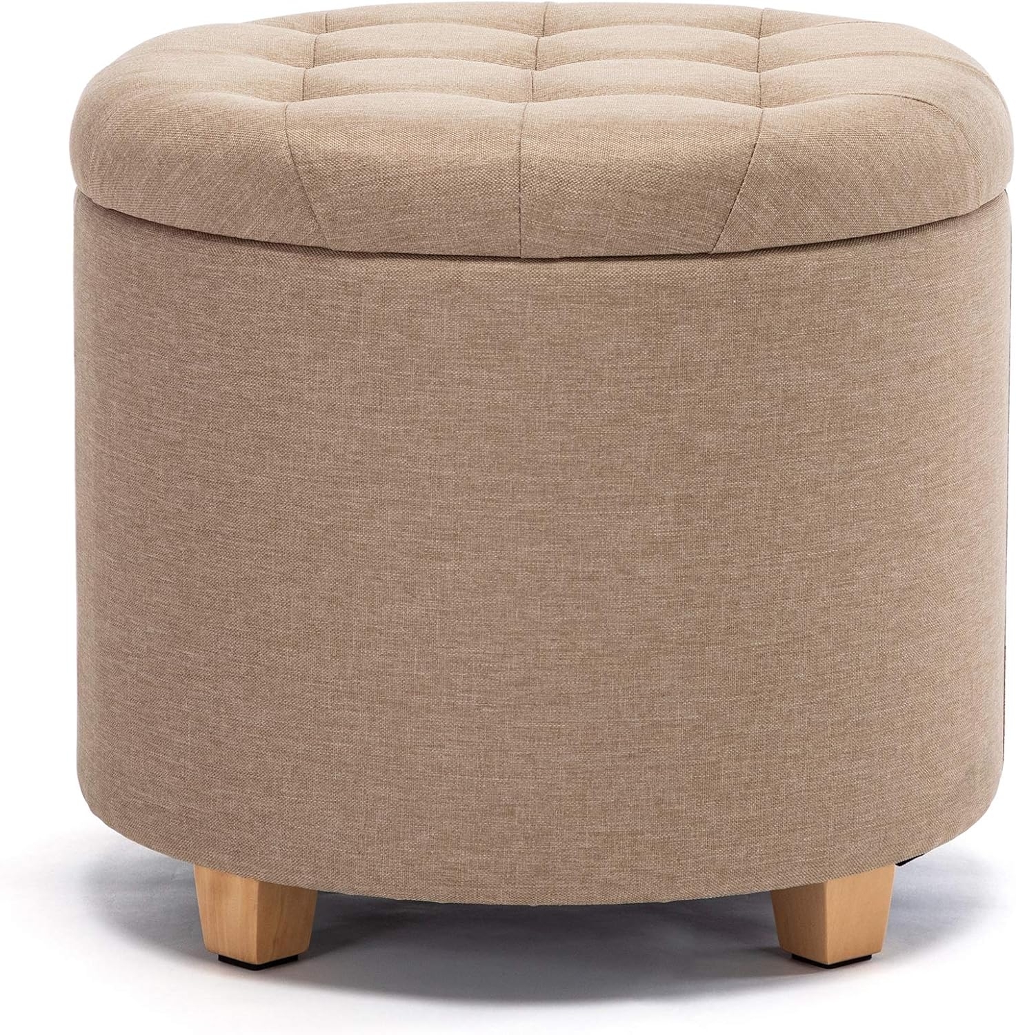 in SitzhockerHNNHOME Sitzhocker mit StauraumSitz rund mit Deckel, Sitztruhe, Fußbank Truhen Aufbewahrungsbox, Leinen, 44 L, 45 x 45 x 41 cm, Beige