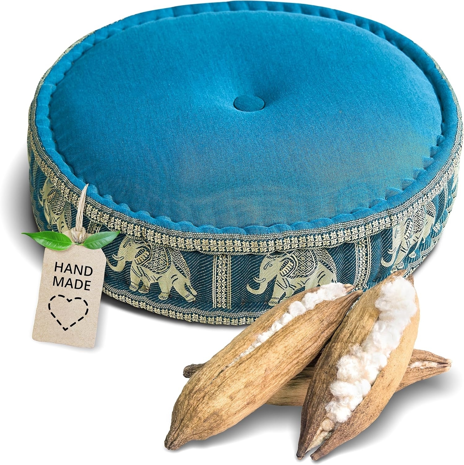 Das livasia Meditationskissen Zafukissen groß (Deluxe) ist ideal für Yoga und Meditation. Mit den Abmessungen 44x15 cm und einer Füllung aus veganem Kapok bietet es eine bequeme Sitzfläche, die Ihre natürliche Körperhaltung unterstützt. Das handgefertigte Kissen verleiht Ihrem Wohnraum eine spirituelle Note und ist sowohl für drinnen als auch draußen geeignet. Genießen Sie entspannte Momente im Schneidersitz und erleben Sie thailändische Lebenslust in Ihrem Zuhause. **Highlights** - Handgefertigt für höchste Qualität - Füllung aus veganem Kapok für nachhaltigen Komfort - Unterstützt eine gesunde Körperhaltung - Vielseitig einsetzbar – drinnen und draußen - Stilvolles Design mit zart schimmernder Stickerei **Produkteigenschaften** - Maße: 44x15 cm - Material: Kapok - Farbe: Bunt - Mittige Steppung für zusätzlichen Komfort - Platzsparend und minimalistisch