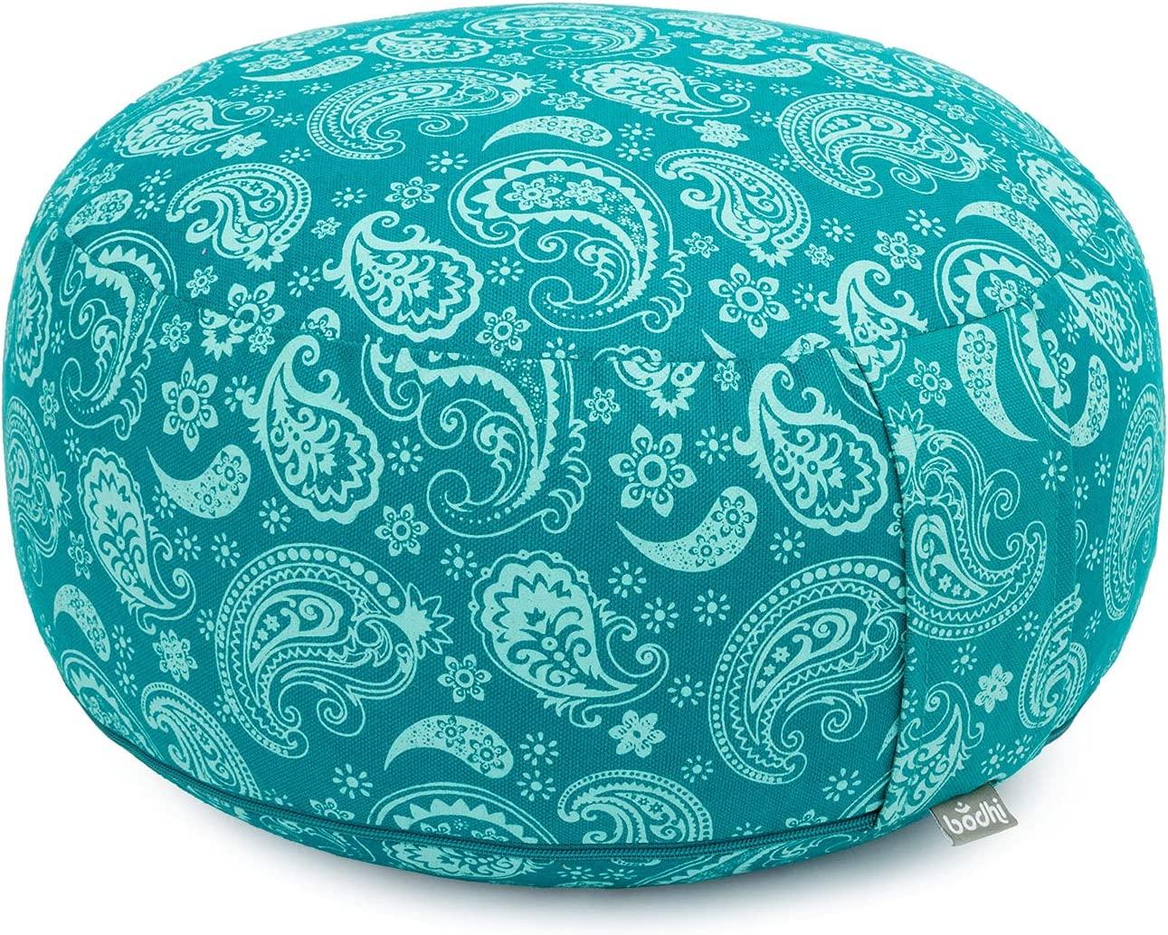| Name | Bodhi Meditationskissen Rondo | Abnehmbarer Bezug aus 100% Baumwolle | Yogakissen mit Bio-Dinkelfüllung | Höhe 20 cm | Praktische Trageschlaufe | Maharaja Collection (Paisley/Petrol) |