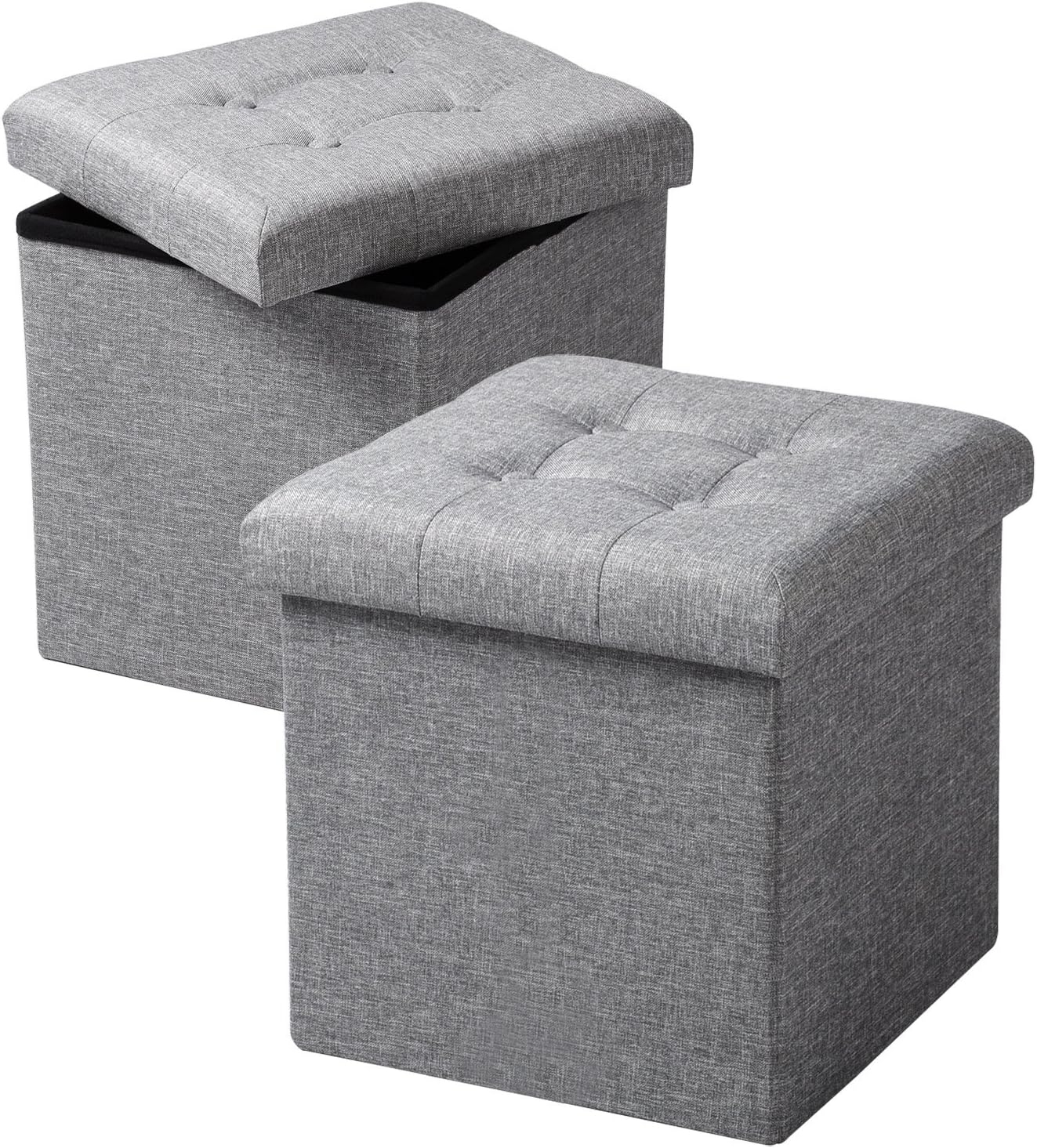 in SitztruhenWOLTU SH06hgr-2 2er Set Sitzhocker mit Stauraum Sitzwürfel Sitzbank Faltbar Truhen AufbewahrungsboxDeckel Abnehmbar, Gepolsterte Sitzfläche aus Leinen, 37,5 x 37,5 x 38CM(LxBxH), Hellgrau