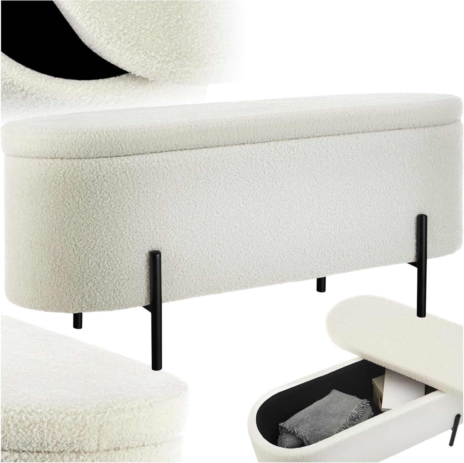 in Sitztruhentectake Bank Sitzbank Lanjagepolstert, mit Bouclé-Stoff und Stauraum, Bequeme Polsterung mit hochdichter Schaumstofffüllung