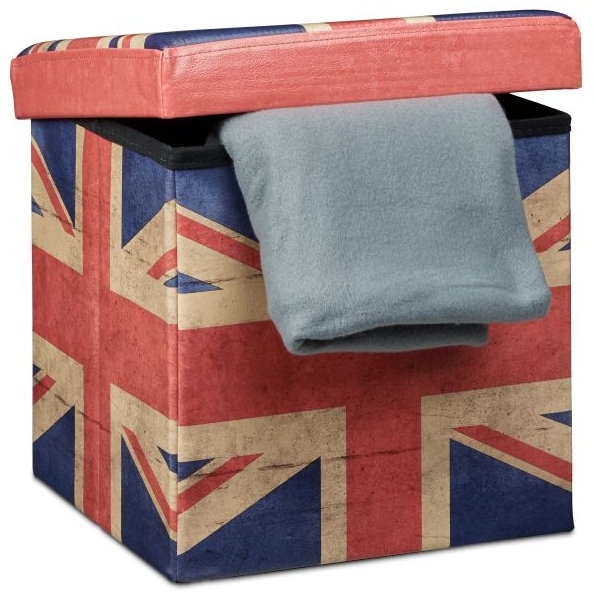 Der faltbare Sitzhocker von Relaxdays vereint Funktionalität und Stil. Mit einem Stauraum von ca. 40 L bietet er Platz für Zeitschriften, Spielsachen und mehr. Die robuste Konstruktion ist bis zu 300 kg belastbar, während das weiche Polster für hohen Sitzkomfort sorgt. Zusammengefaltet lässt sich der Hocker platzsparend verstauen und passt in jedes Wohnambiente. **Highlights** - Stabiler Sitzhocker mit bedrucktem Kunstleder - Viel Stauraum von ca. 40 L - Robuste Konstruktion bis zu 300 kg belastbar - Weiches Polster für angenehmes Sitzgefühl - Platzsparend zusammenfaltbar **Produkteigenschaften** - Maße aufgebaut: 38 x 38 x 38 cm - Maße zusammengefaltet: 6 x 38 x 38 cm - Material: Kunstleder - Design: UK-Motiv - Gewicht: ca. 2,5 kg - Zusätzliche MDF-Platte zur Stabilisierung **Lieferumfang** - Hocker gefaltet - Extra Deckel - Bodenplatte - Dekorationsartikel sind im Lieferumfang nicht enthalten