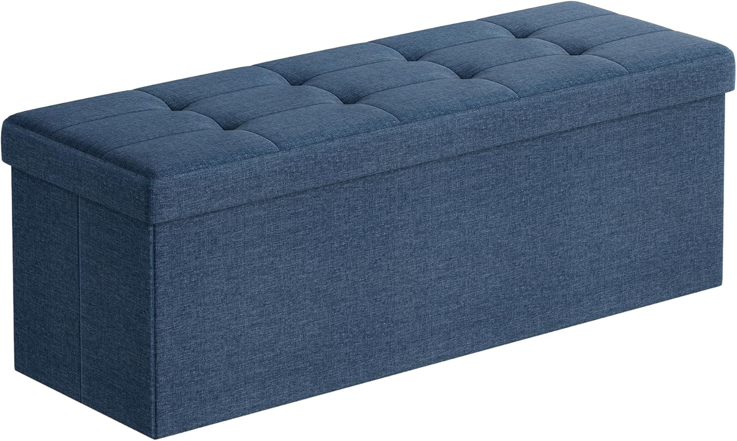 **SONGMICS Sitzbank mit Stauraum, Sitztruhe, Aufbewahrungsbox, faltbar** Die SONGMICS Sitzbank mit Stauraum ist eine vielseitige Lösung für Ihr Zuhause. Mit einer max. statischen Belastbarkeit von 300 kg bietet sie nicht nur Stabilität, sondern auch Komfort dank der 2,5 cm dicken Schaumstoffpolsterung und dem atmungsaktiven Bezug aus marineblauem Leinenimitat. Die 120 L Fassungsvermögen ermöglichen es Ihnen, verschiedene Gegenstände zu verstauen, während die faltbare Konstruktion Platz spart, wenn sie nicht benötigt wird. Diese Sitzbank ist nicht nur funktional, sondern auch stilvoll und dekorativ. **Highlights** - Max. statische Belastbarkeit von 300 kg: Extra stabil und robust - 2,5 cm dicke Schaumstoffpolsterung: Bietet hohen Sitzkomfort - 120 L Fassungsvermögen: Viel Platz zum Verstauen - Faltbare Konstruktion: Platzsparend bei Nichtgebrauch - Atmungsaktiver Bezug aus Leinenimitat: Verleiht der Sitzbank eine klassische Note **Produkteigenschaften** - Maße: 110 x 38 x 38 cm (B x H x T) - Material: MDF-Platten, Metall (Trenngitter), Leinenimitat - Farbe: Marineblau - Vielseitige Nutzungsmöglichkeiten: Wohnzimmer, Flur, Schlafzimmer - Stilvolles Design mit zusätzlichem Stauraum - Inklusive stützendem Trenngitter aus Metall