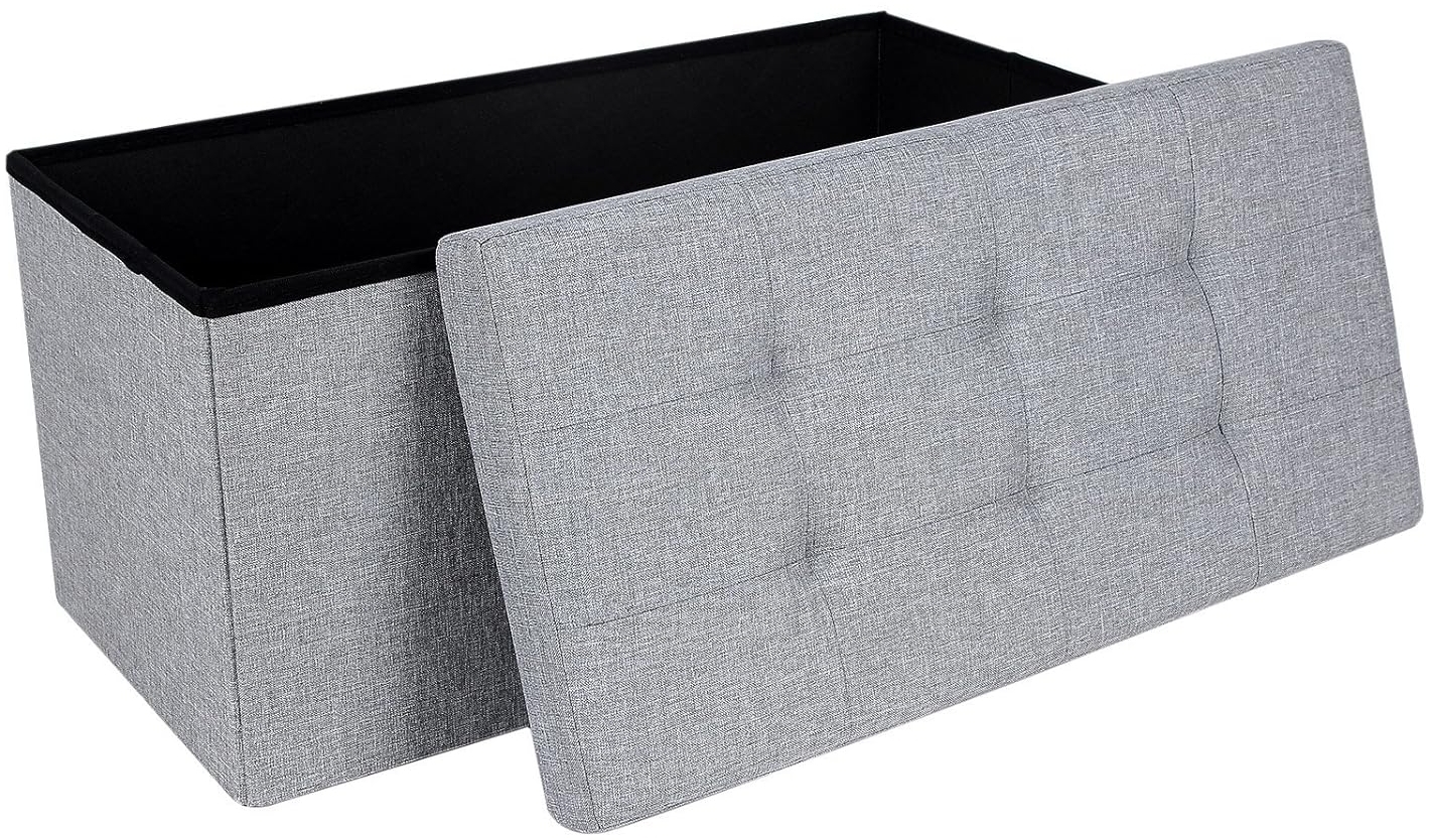 Die SONGMICS Sitzbank mit Stauraum ist nicht nur komfortabel, sondern auch stilvoll. Die dicke Schaumstoffpolsterung und der atmungsaktive Bezug aus hellgrauem Leinenimitat sorgen für ein angenehmes Sitzgefühl. Die Sitztruhe besteht aus hochwertigen MDF-Platten und ist extra stabil. Sie bietet ein Fassungsvermögen von 80 Litern und kann bis zu 300 kg belastet werden. Die vielseitige Sitzbank kann als Fußablage, Schuhbank, Betttruhe oder Aufbewahrungsbox genutzt werden. Der Lieferumfang umfasst eine stilvolle Sitzbank mit zusätzlichem Stauraum unter dem Deckel. Beseitigen Sie das Chaos in Ihrem Zuhause und verleihen Sie ihm eine dekorative Note. **Highlights** - Komfortable Sitzbank mit 2,5 cm dicker Schaumstoffpolsterung - Stabiler Aufbau aus hochwertigen MDF-Platten - Großzügiges Fassungsvermögen von 80 Litern - Vielseitig einsetzbar als Fußablage, Schuhbank, Betttruhe oder Aufbewahrungsbox - Stilvolles Design in hellgrauem Leinenimitat **Produkteigenschaften** - Abmessungen: 76 x 38 x 38 cm (Breite x Höhe x Tiefe) - Material: Leinenimitat - Belastbarkeit: bis zu 300 kg (max. statische Belastbarkeit) **Lieferumfang** - 1x SONGMICS Sitzbank mit Stauraum, Sitztruhe, Sitzhocker, Aufbewahrungsbox, Fußablage, faltbar, belastbar bis 300 kg, 80 L, 76 x 38 x 38 cm, Leinenimitat, hellgrau LSF47G