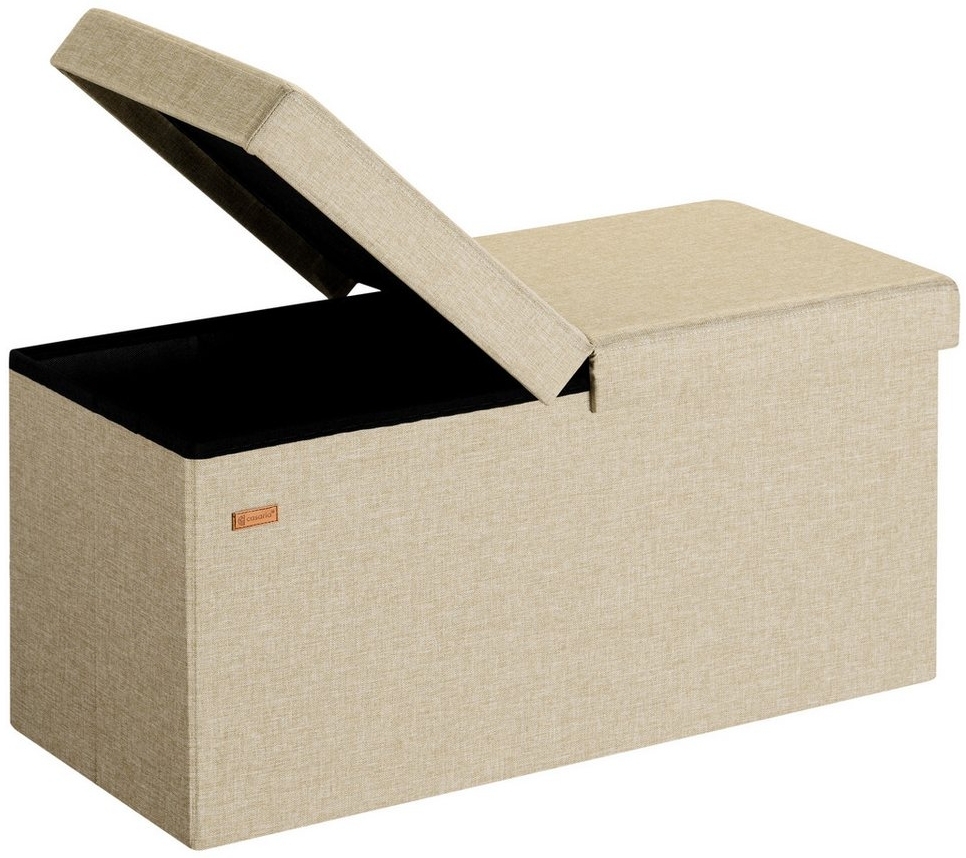 Casaria Sitzbankmit Stauraum Faltbar Beige 80x40x40cm Gepolstert Deckel Stoff Stabil