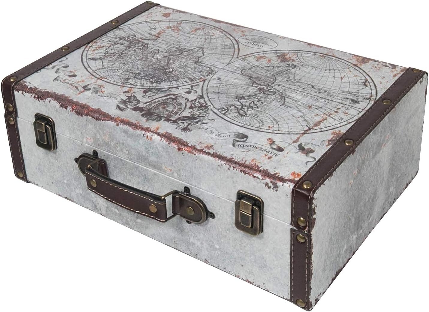 HMF Aufbewahrungsbox Handgefertigter Vintage Koffer aus HolzDeko Koffer (1 St), Geschenkkoffer im Weltkarten Design, 38 x 26 x 13 cm