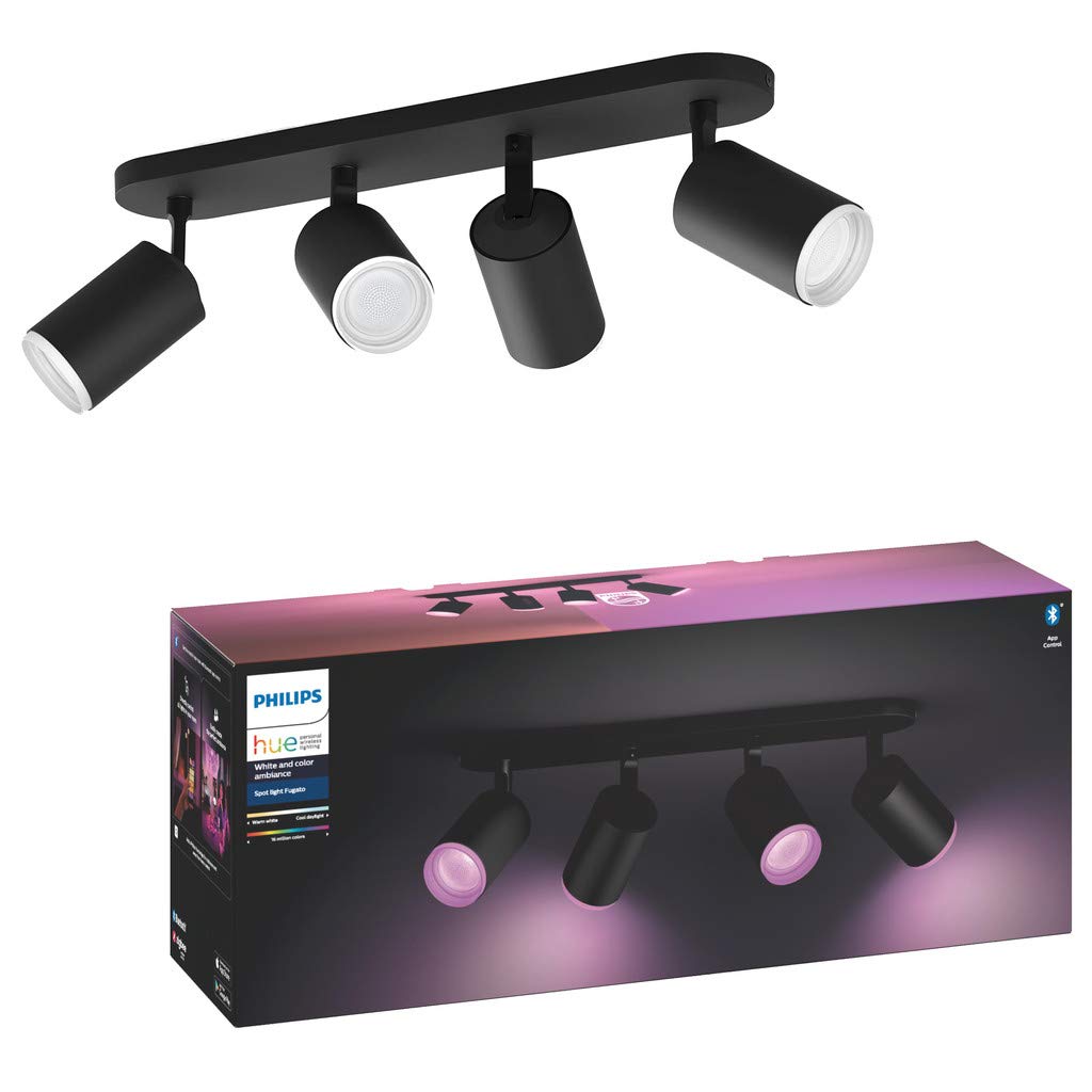 in Smarte DeckenbeleuchtungPhilips Hue White and Color Ambiance Fucato4 LED-Strahler, Schwarz, GU10, 5,7 W, weißes und buntes Licht, kompatibel mit Bluetooth und Zigbee, funktioniert mit Alexa und Google Home